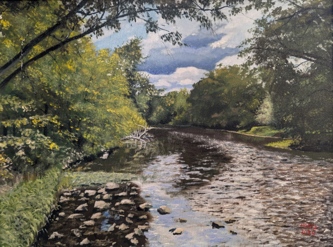 John was raised in Springfield, Union County, New Jersey. He developed an interest in floriculture and enrolled in the vocational agriculture program at the local Dayton Regional High School. When it came time to consider college his agriculture instructors recommended that he consider the National Agriculture College (now Delaware Valley University) in Doylestown, Pennsylvania. John enrolled there and in his first year became interested in biology, switched to that major and graduated as one of the College’s first Biology majors. Graduate school followed at the University of Illinois where he focused on animal behavior. Following completion of his graduate work he returned to join the Faculty at his Alma Mater. During his lengthy career there he has taught numerous courses and held a number of administrative posts, including an 11-year stint as the institution’s chief academic officer.Along the way John tried various outlets for his artistic talent, including watercolors, acrylics, pen-and-ink drawings and, finally, oils. A self-taught studio painter, John now focuses exclusively on oil painting.John and his wife, Margaret, live in Chalfont. They have raised three children and are proud grandparents of five grandchildren.John is active in the Bucks County Audubon Society, having served as that organization’s first (and, again, recent) President. He has also volunteered at Bowman’s Hill Wildflower Preserve.As an artist, John displays his work in the Chapman Gallery in Doylestown. He holds membership in the New Hope Art League. Though he no longer participates in outdoor shows, his work can frequently be seen at local exhibitions..