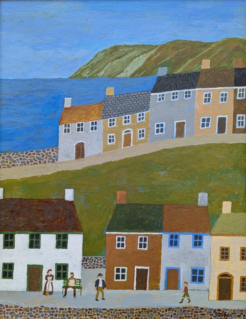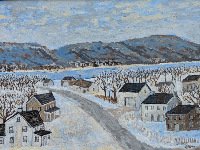 Stephen Tippett began painting as a hobby during his 2nd year university.After working as a life model for several art schools, he decided to study art formally and was accepted into the Certificate Program at PAFA. After two semesters, he realized he was allergic to oil paint and solvents and retreated to his home studio, using water-based acrylics. Stephen’s work harkens to days gone by, depicting farm and village scenes and scenes of France where he lived for three years. His work is always an interpretation, done in a naive or primitive style with graphic design quality to it. Stephen is a retired university professor, musician and published composer.