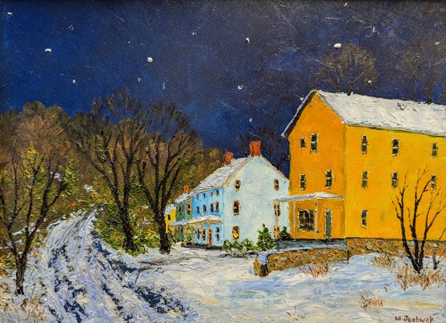 Born in Philadelphia, William Jachwak is a Pennsylvania Impressionist, who resides in Franconia Township. Active in Eastern Pennsylvania, he is also a plein-air painter focused on landscape painting, particularly in the Bucks County area. Mostly self-taught, he studied for two years with artist, Ray Overpeck. Influences include Daniel Garber and members of the Bucks County school of impressionism.Jachwak first gained attention, and is still best known, for his luminous winter landscapes.